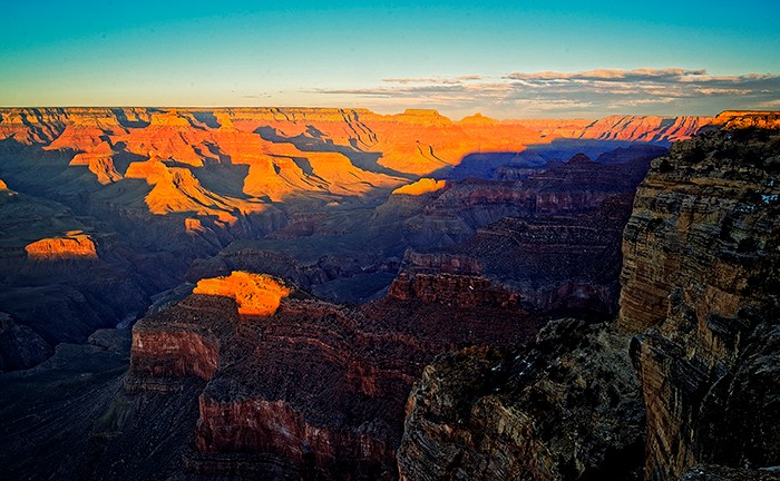 I stayed extra 20 minutes after the beautiful sunset at Lipan Point on a recent trip to Grand Canyon. The sky seemed to change colors every minute. I shot this image 15 minutes after the sun fell below the horizon.