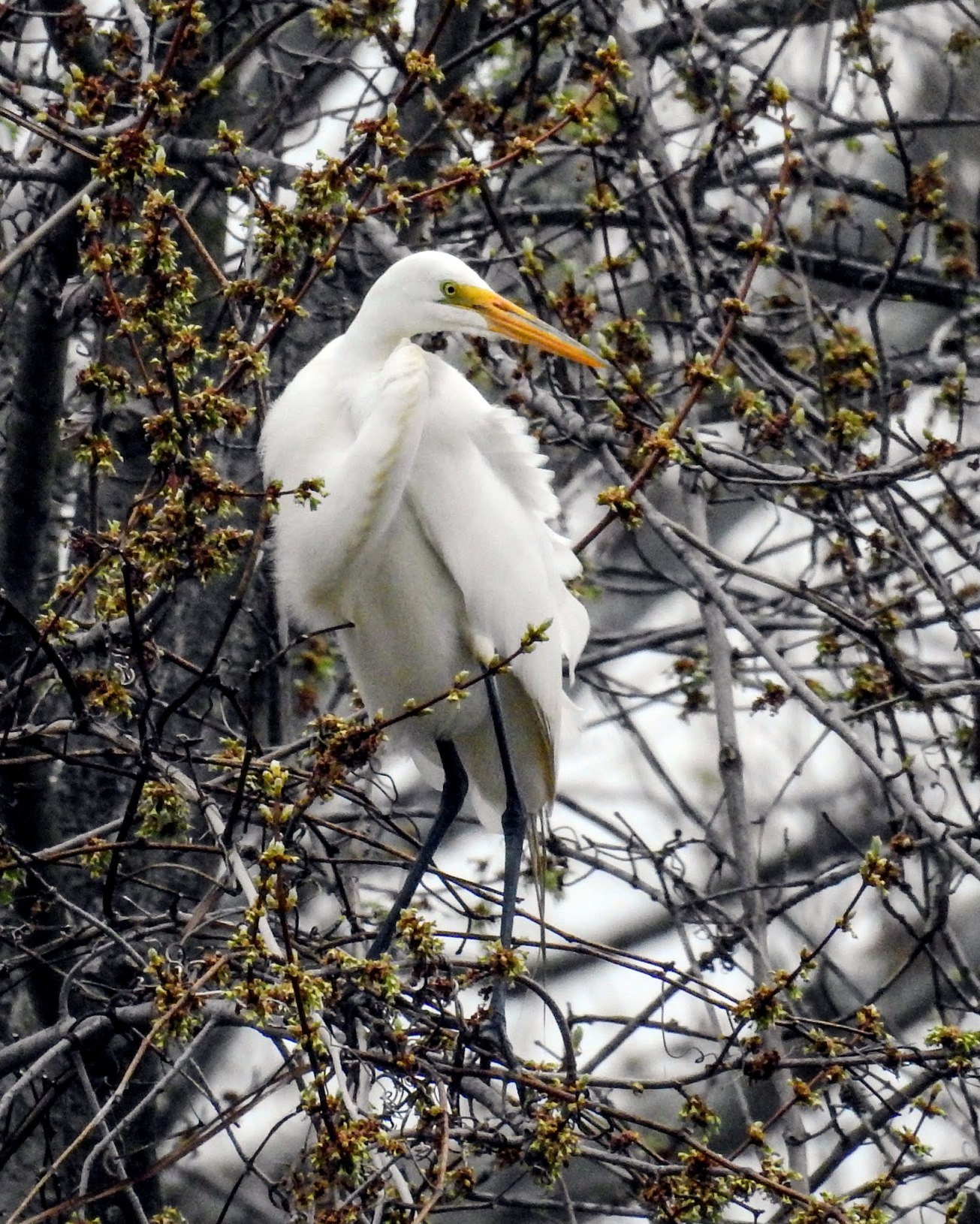 I was very happy to see a beautiful white egret showed up in my nearby Lilypons Water Gardens today. Hopefully, it is a sign of the coming of spring. I took these pictures using my new Nikon Coolpix P900 camera which has up to 2000 mm zoom capability. I would not be able to get clear images with my regular Nikon D600 camera with 400 mm telephoto lens.