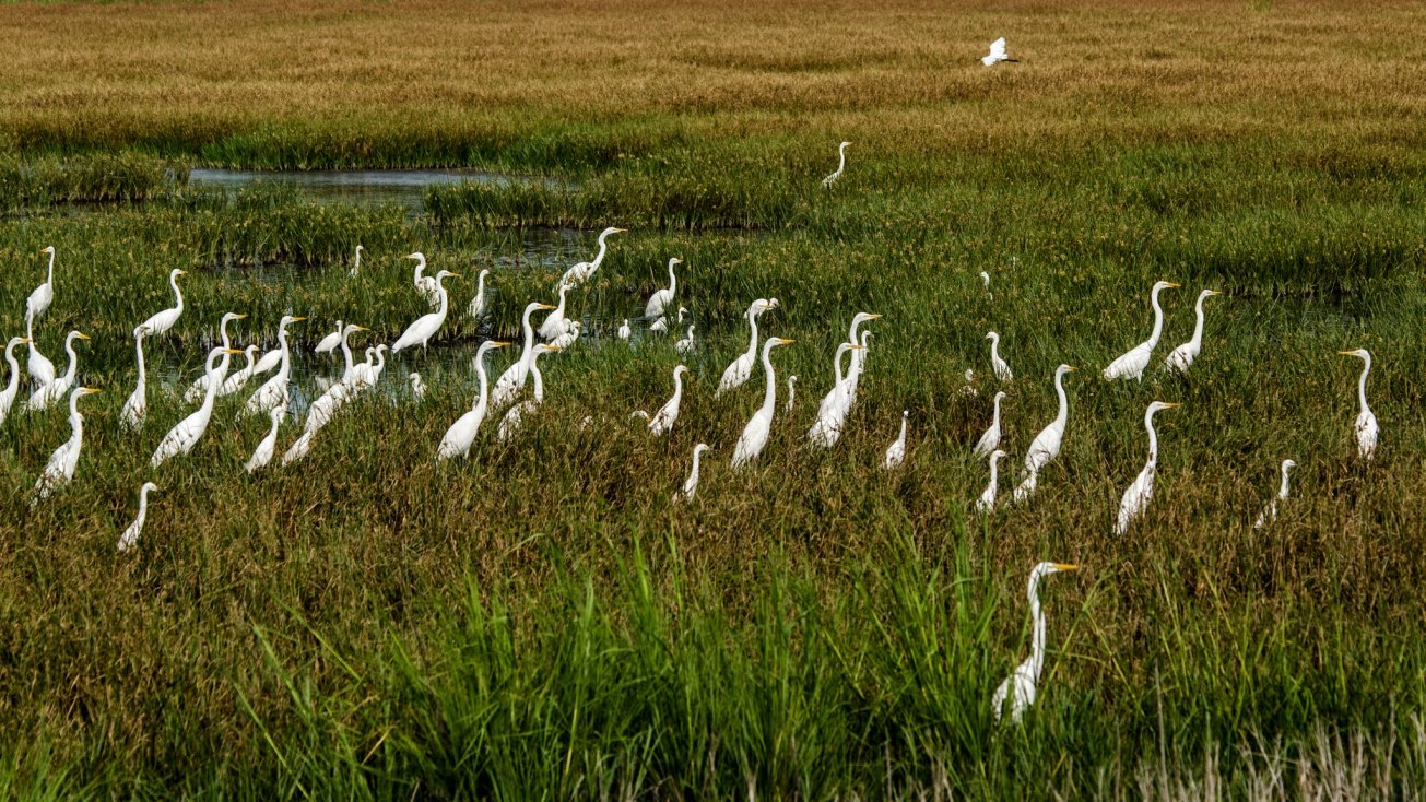 Great White and Snowy Egrets at Bombay Hook NWR, DE