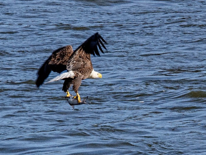 Being opportunists, bald eagles seem to enjoy stealing fish from others more than catching from the water by themselves. It’s exciting to watch and challenging to capture with the camera.
