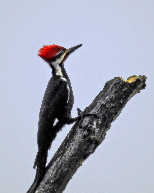 Talking about being lucky, I happened to look out from our dining room with my camera in hand yesterday and saw this rare and beautiful pileated woodpecker perching on a dead branch in my backyard woods. I quickly snapped 3-4 pictures before he/she flew away.