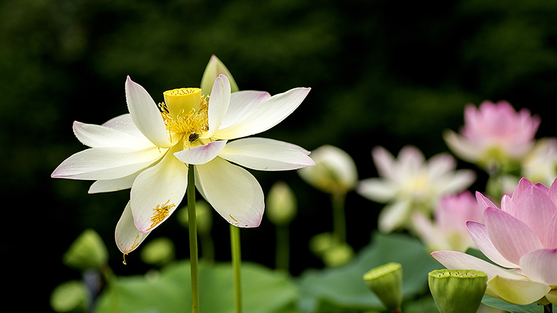 I knew it’s a bit early for lotuses at Kenilworth Aquatic Gardens in Washington, DC to bloom this week but I was very anxious to see if some of the early-blossom ones have done so. Sure enough when I visited the Gardens yesterday, I saw many beautiful blossoms, enough for me to shoot a couple of hours without any crowd – it will be quite different in two weeks when the blossom will be at the peak, coincided with the Annual Lotus Festival.