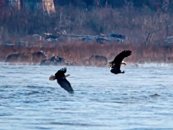I have witnessed bald eagles fighting over fish many times and usually saw fish being dropping in the water or on the land (for vultures’ benefit) until yesterday when I went back to Conowingo Dam for more eagle photographing. I have to admit when I […]