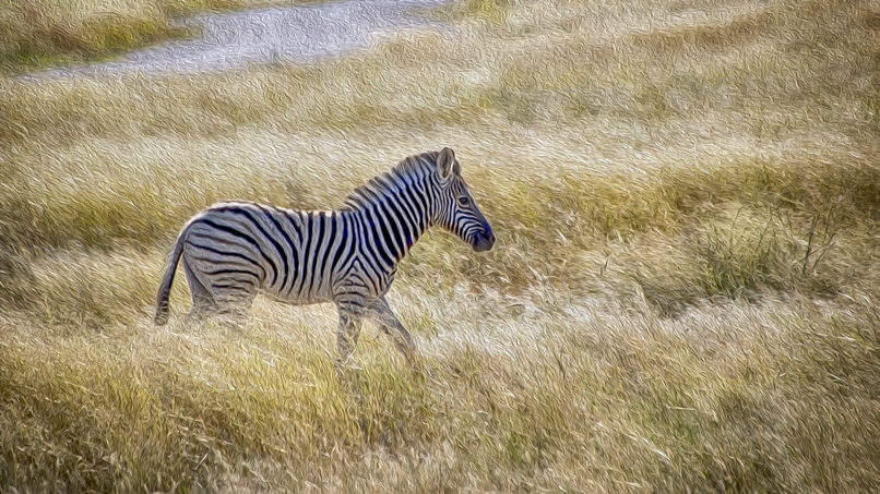 Despite a large number of zebras in the field, I found it was not that easy to capture them in the attractive gesture. Here are a few I like and for the fun of it I converted them to oil paint like images using Photoshop software.