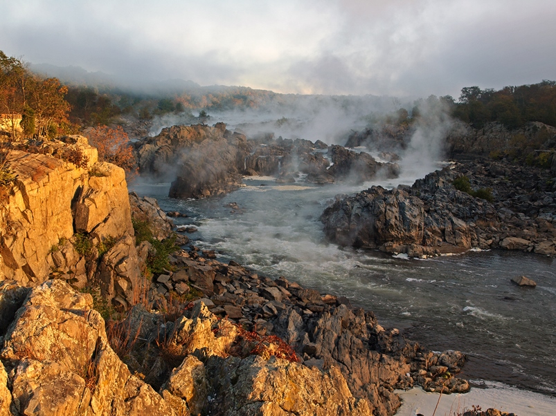 I have taken so many misty Great Falls images over the years and yet never get tired of this nature beauty. You see, even with the same river background, the morning river mist and sunlight could transform them into a total different landscape. The mist does add the mystery to the river scene. The morning river mist usually only occurred at the end of October when the river water temperature is still in the 60+ degree F. and should the morning air temperature takes a dive, say in the 30+ degree F. , the difference of temperature of 30 degree will almost guarantee the production of river mist. This idea conditions happened in early this week.