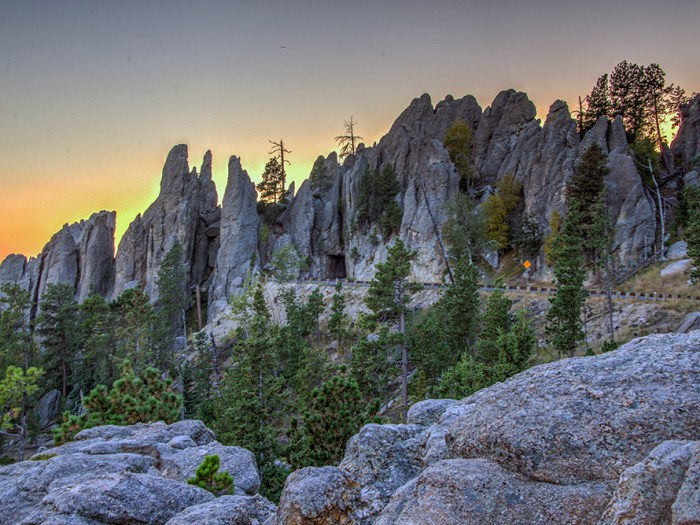 We took a late afternoon drive on Needles Highway (Route 87) north of Custer Sate Park and really enjoyed viewing all the spires along the highway when the sunset light was reflected from the magnificent spires.