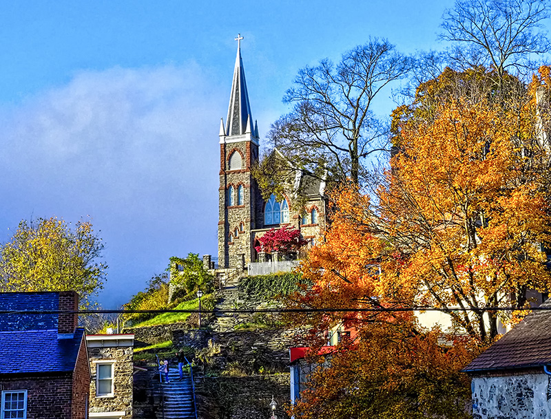 Harpers Ferry, West Virginia is a historical rich small town where the States of Virginia, West Virginia and Maryland meet and where Shenandoah River meets Potomac River. It is such a strategic location that it played a very important role during American Civil War that it changed the controlling role between Union and Confederate troops five times in 1861-1865. Today, it is an outdoor mecca for water sports, hiking or just strolling this historical old town. The first overlook image was taken from Maryland Heights a few years ago and the rest of images were taken yesterday morning that all show the beautiful fall colors.