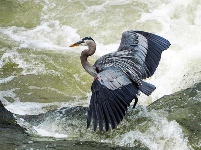 Great blue herons are beautiful birds and I love photographing them. Great to see them back to the Great Falls this summer.