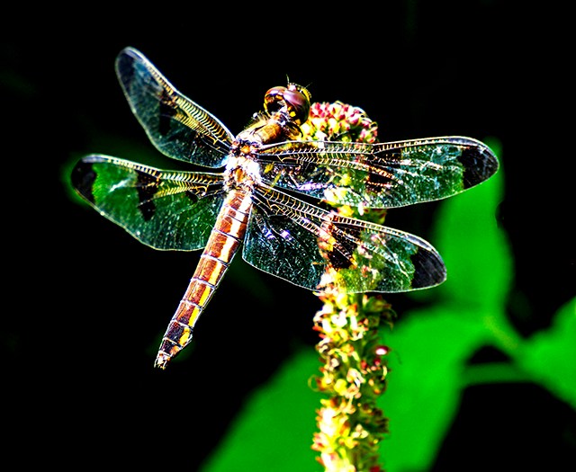 I took this photo using my Olympus Mirrorless camera with 12-200 mm (equivalent of 24-400mm) lens. Camera setting were ISO 400, f/6.3, 1/160 sec. and zoom at 200mm. Sunlight made the magic so the wings looked like glittering jewels.