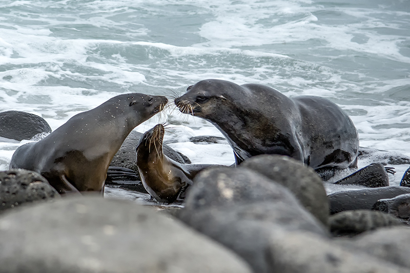 After I posted the sequential shots of two herons fighting in the Great Falls yesterday, I thought about another sequential photos of the sea lion family at Galapagos Islands we visited in 2012. The reason I treasure these images is their behavior similar to human – when daddy is coming home, mommy and kid greet him “at the door” and then you see daddy give kid a kiss and finally kiss his better half.