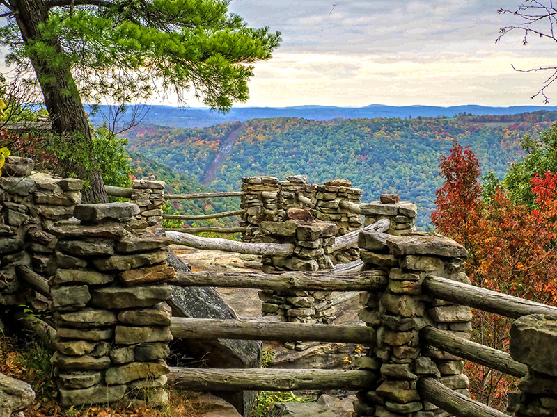 Coopers Rock Overlook provides great panorama view of the canyon.