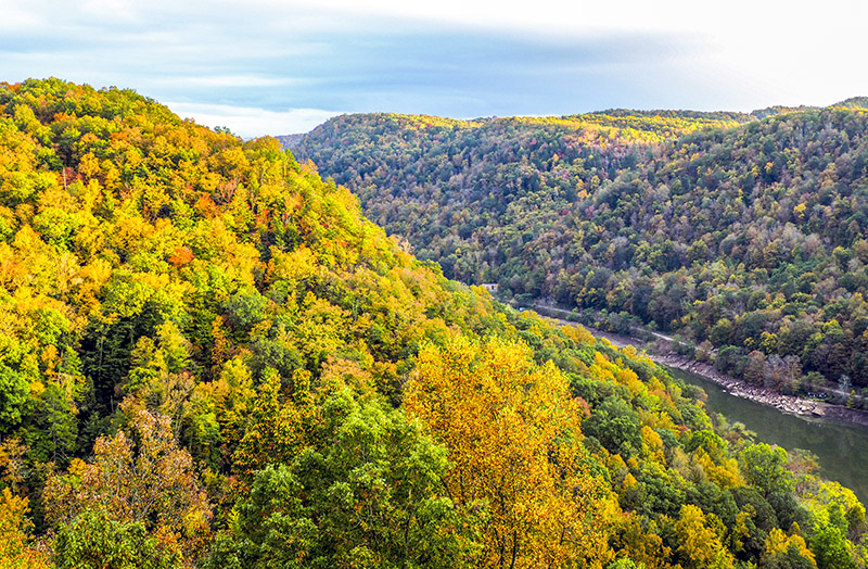 Our last stop of the week long West Virginia foliage tour was Hawks Nest State Park. We stayed at the lodge for three days for tour the park itself, the nearby Babcock State Park for Grist Mill and the New River Gorge areas including New River Bridge, Grandview and Sandstone Falls. We were pleasantly surprised the outstanding view of from our room – I took many pictures during the early morning and late afternoon.