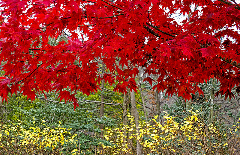 I took a walk at Brookside Gardens this morning and was pleasantly surprised to still see some late foliage, especially some bright red leaves.