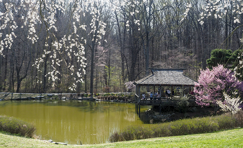 While cherry blossom at Tidal Basin draws much attention in Washington DC areas, Brookside Gardens in Wheaton, Maryland do have lots of spring flowers to offer, especially several weeping cherry tree blossoms. It was a beautiful Easter Sunday yesterday and it drew a lots of visitors to the Park.