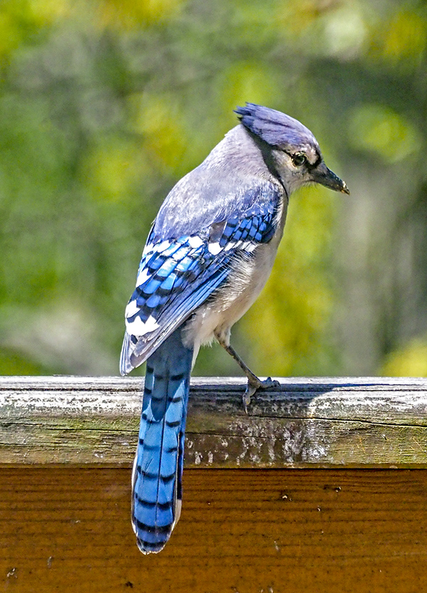 I had two blue jays visiting my bird feeder on my deck yesterday. I love blue jay with such beautiful blue color of feather. The last image was a surprise for me to see and I was lucky to capture such lovely scene.