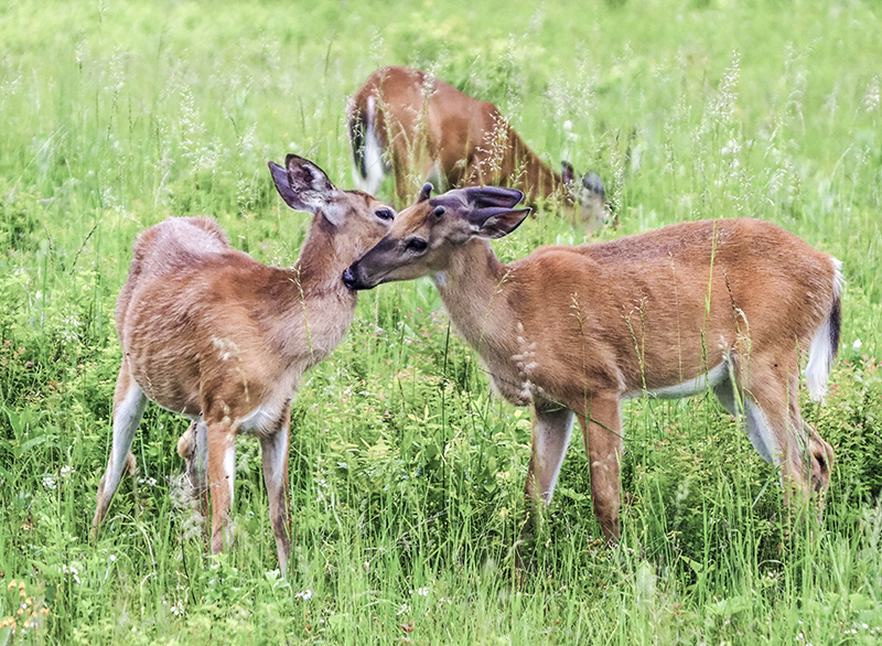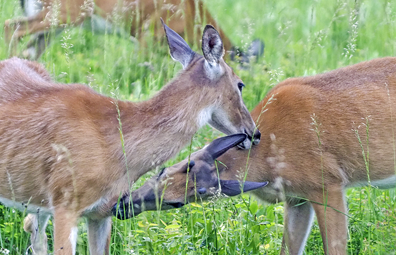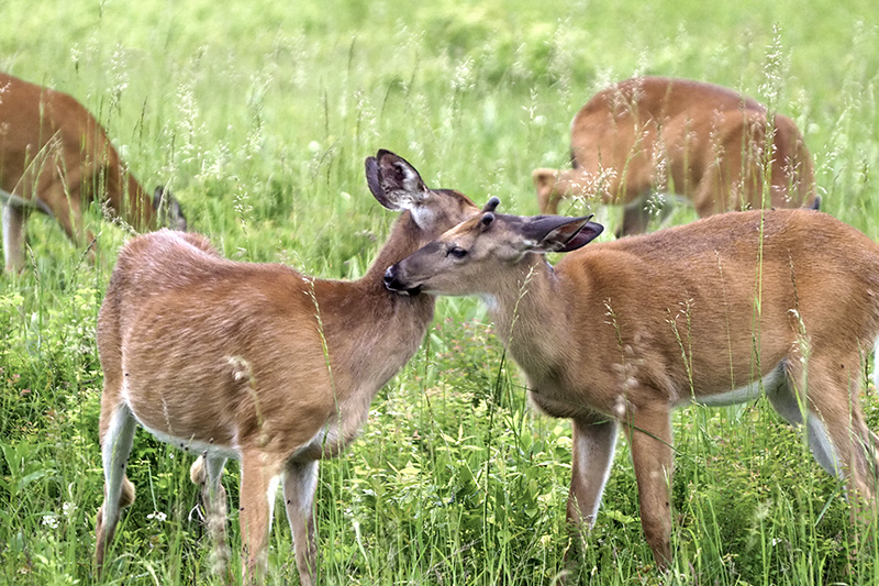 We took an overnight trip to Shenandoah National Park earlier this week. We stayed at the Big Meadows Lodge so we can quickly get to the Big Meadows all the times where if one’s lucky can see the new born fawns under the brushes or trees this time of the year (early June). Well, we were not so lucky this time, however, we did see lots of adult deer. In two occasions we did witness how deer showing their affection to each other. I’m happy to be able to capture the scenes in sequence.