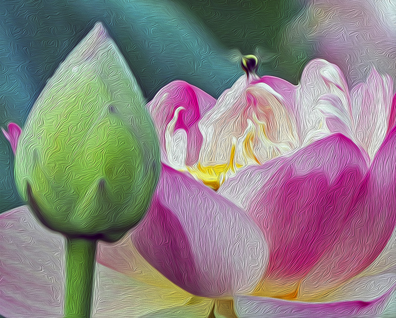 I converted some of my lotus photos into the oil painting-like images using Adobe CS6 software. Some of my photo friends do not care for it because they want to keep the photography as realism. However, I do consider photography as kind of art work besides it’s fun to play with this feature of software on some selected lotus photos.