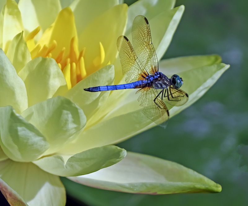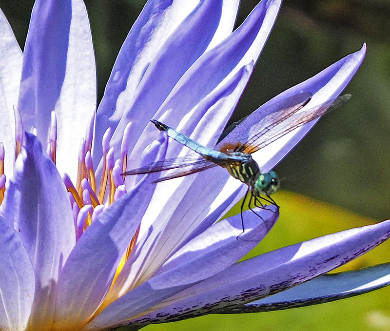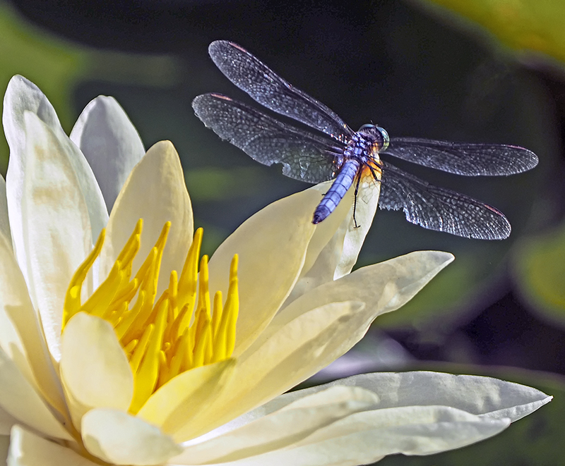 I went back to Carroll Creek Park in downtown Frederick yesterday nirning. The water lilies are still in full bloom and are beautiful. But there were so many dragonflies flying around and I could not stop shooting them. The rare opportunity was, however capturing the colorful rain drops on the lotus leaves that reflecting the sunlight just the right angle at the right time!