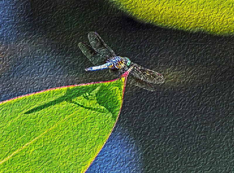 Among the dragonfly images I posted previously, I like this one the best, because it’s simply composed with nice contrast. However, it was not as sharp as I like. By converting to an oil-painting look, it overcome the shortcoming, besides the texture looks good on the overall image.
