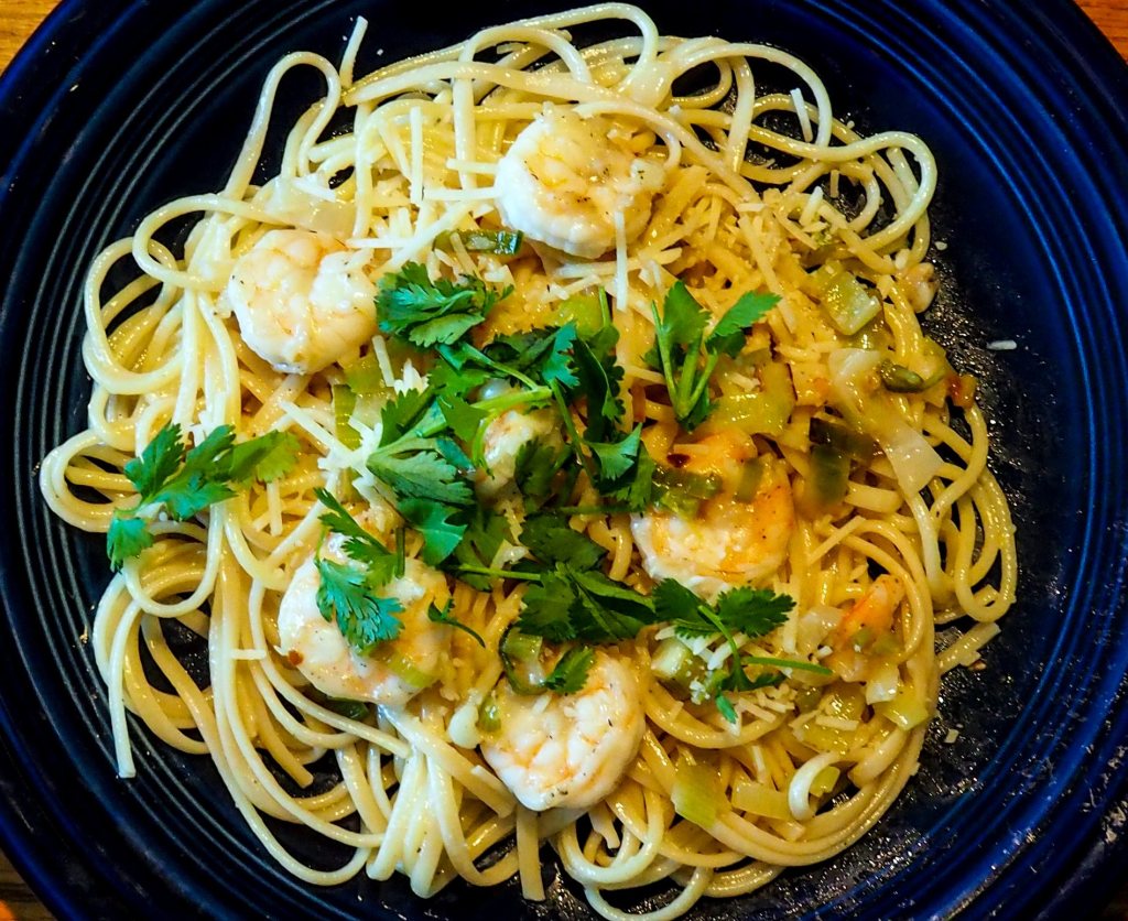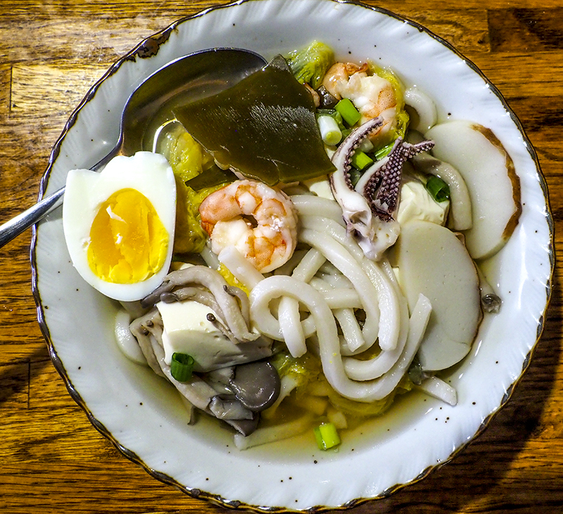 The feature picture show Scallops with Peas, Mint and Shallots. The second picture is the Pan-Fried Cod with my own vegetable sauce. The third dish is the Indian Butter Chicken with rice. Next is the Japanese Udon Noodles. The last one is one of my favorable Italian dishes, that is Shrimp Scampi with Pasta.