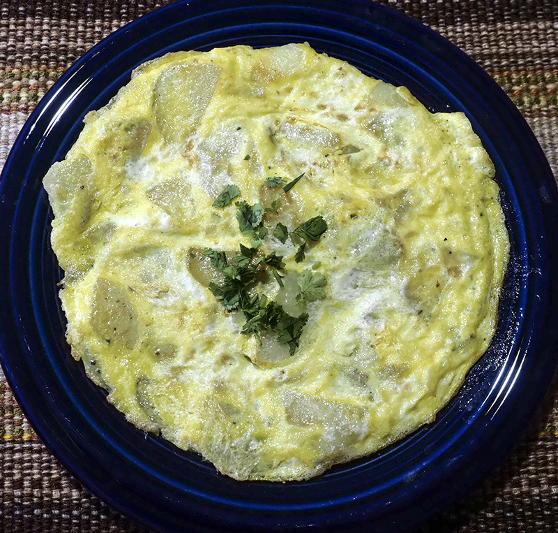 After a good night sleep, I woke up with energy to make something different for breakfast and it’s ‘tortilla de patatas (potato)”. It’s one of the tapa dishes in Spanish restaurants.