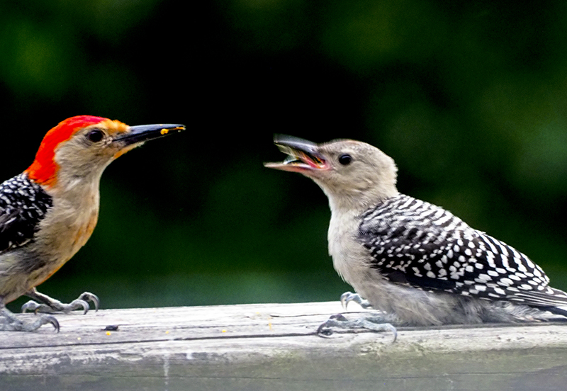 I had an unusual bird scene on my deck this morning. First, a pair of downy woodpeckers showed up at the feeder and showed the feeding scenes. Shortly after they left a pair of red-bellied woodpeckers came along and showed the feeding actions. I have witnessed and photographed downy woodpeckers feeding scenes previously but it’s the first time seeing red-bellied woodpeckers in such actions. I’ve seen similar action of blue jays a week ago but did not capture with my camera. Hope they come back!