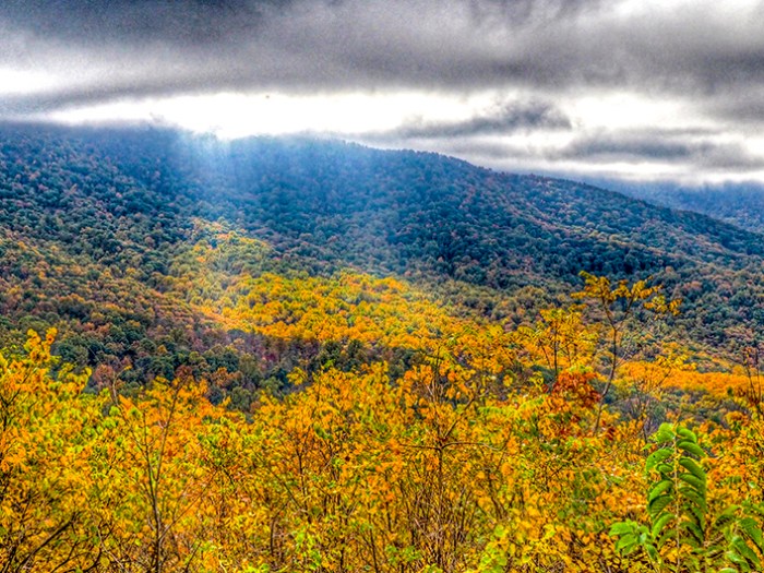 I took a day trip to Shenandoah National Park yesterday. The fall colors along the Skyline Drive were brilliant. However, the colors on some of the distant mountains have not fully developed yet – may be another week.